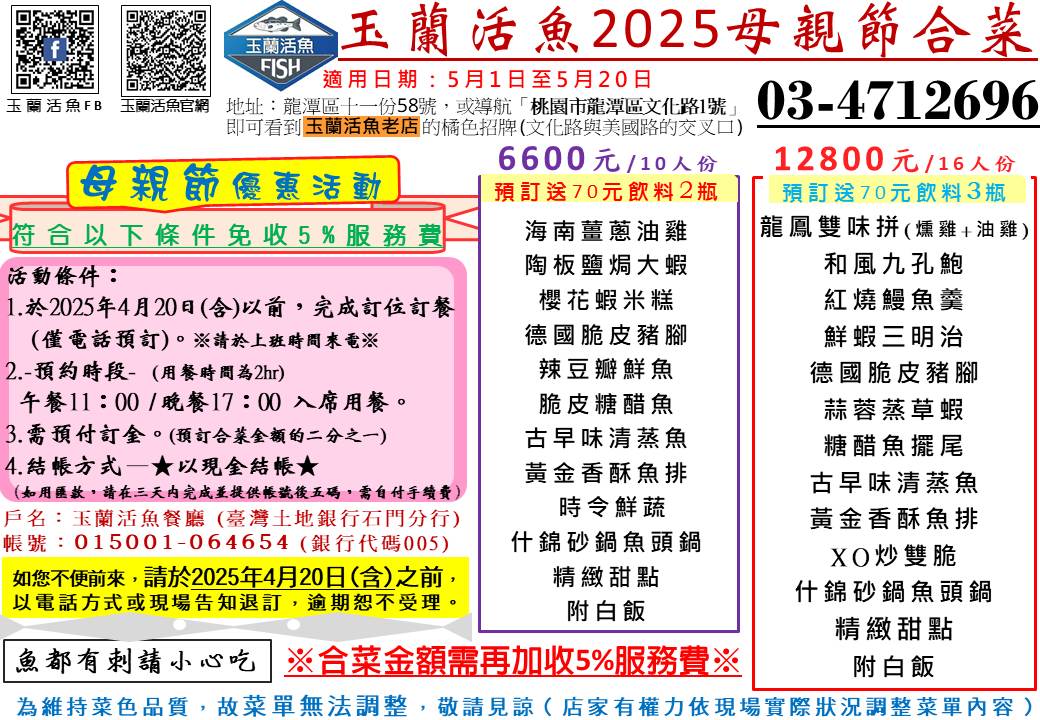 民國98年8月正式更名玉蘭活魚,此地點經營至今數十個年頭,第三代大女兒余映樺夫妻倆開始接手經營了傳承母親余宋秀連經營活魚餐廳40餘年的經驗,充滿熱情,堅持以新鮮的活魚,來招待每一個來店的客人