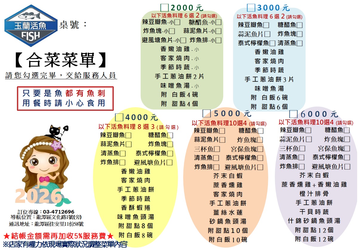 合菜菜單除提供選擇之菜色外,無法改菜,